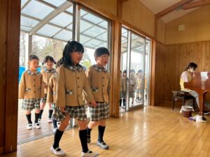 ピアノの演奏に合わせて元気いっぱい歌いながら入場です♫