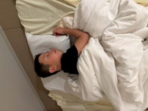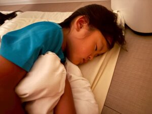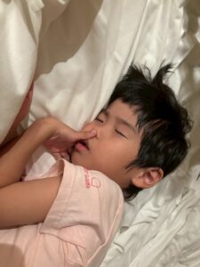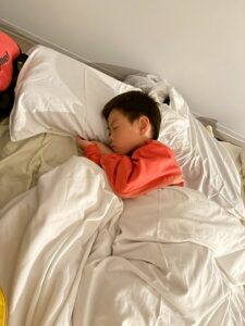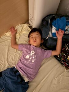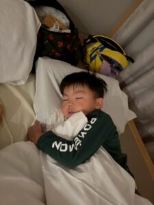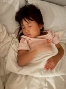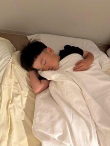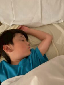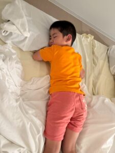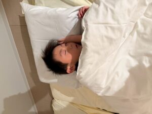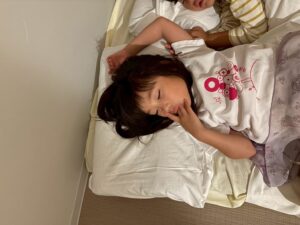 「隣に寝よー!」と布団に入ってからもお話をしながら、すこーしずつ目を閉じてながーいながーいトントンの末に就寝しました