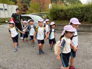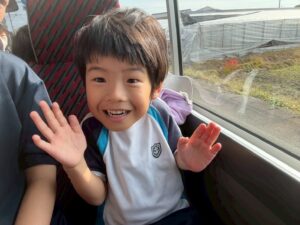 見送りにきてくれたままやぱぱに元気いっぱい「いってきまーーーーーす!!」と手を振っていざお泊まり保育のSTART