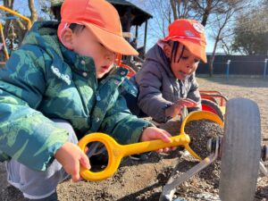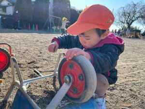 三輪車を使って整備ごっこ!