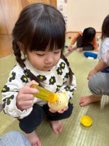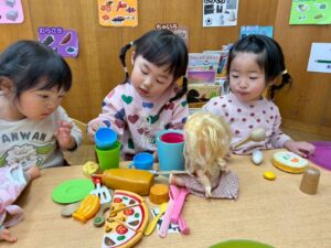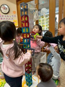 「かしてー!」「ちょっとまっててね」「いっしょにあそぼう」など、たくさんの言葉のやりとりを楽しみながら遊ぶ姿が多く見られるようになってきました!✨️