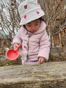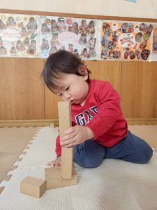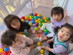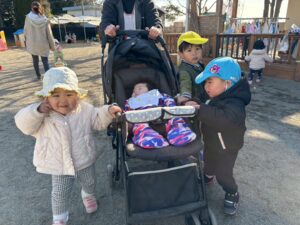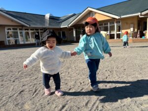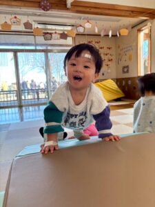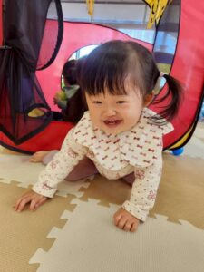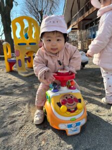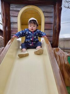 昨年末に新しくできた滑り台の遊具も大好きで、沢山滑ったり、滑り台の下の隠れ家でまったりしていたり・・・🎶 歩けるようになった子も増え、思い思いに好きな遊びに向かっていく姿が見られます🧡