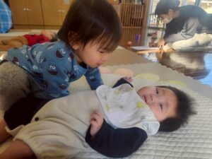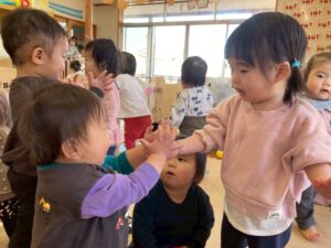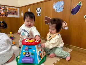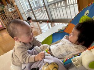 最近のビーンズさんは、お友達の存在が気になるようで、隣に座って同じ物で遊んでみたり、ハイタッチをしてコミュニケーションを取る姿が多く見られるようになりました✨️とても微笑ましい光景で嬉しく思います💕