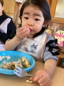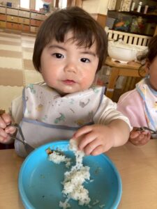 好き嫌いも出てきましたが、お友達が食べる姿を見て、お口を開けてくれる子も👏