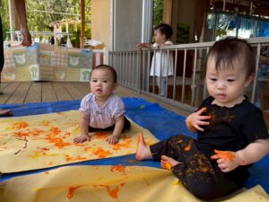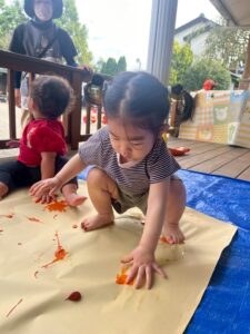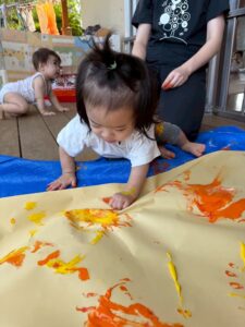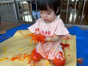 フィンガーペイントを楽しんだ後は全身で絵の具遊びに挑戦★