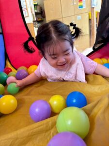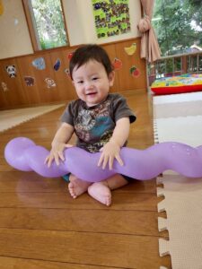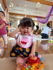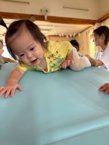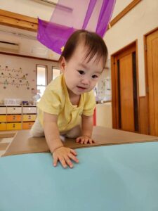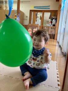 「なにが始まるの〜?」と言わんばかりに不安そうな顔を浮かべたり、涙してしまう子もいましたが、保育者と一緒に取り組んだり、お友達の楽しむ姿を見たりしながら過ごしているとちょっとだけ慣れたり、楽しむことが出来ました★