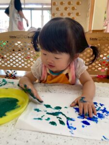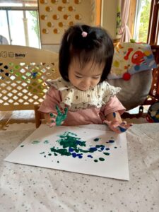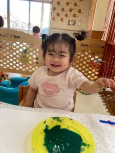 一人ひとりが絵の具の感触を楽しみながらも、いつもとは違った絵の具遊びを楽しんでくれていました🎶