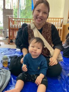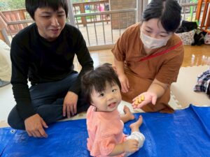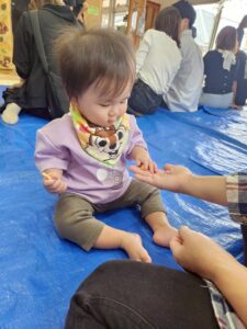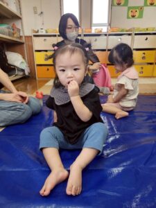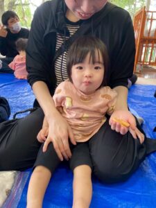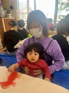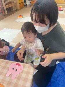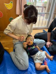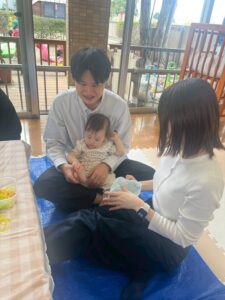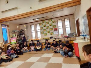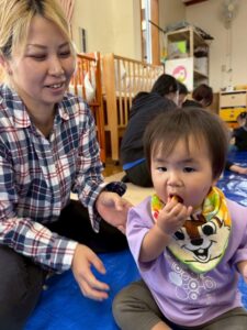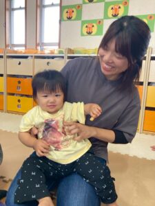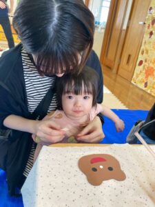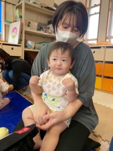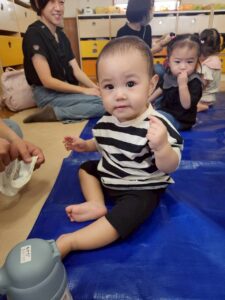 それから「あたま かた ひざ ポン」の手遊びもして、親子で楽しくふれあい遊びが出来ました✨