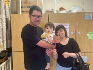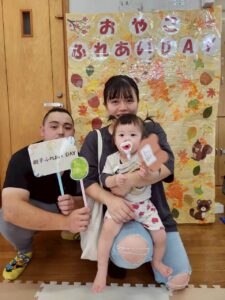 作ったフォトプロップスを持って、親子で記念撮影をしました📷