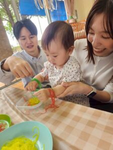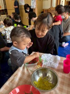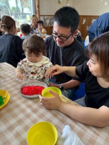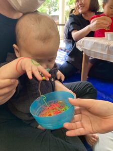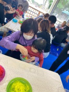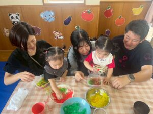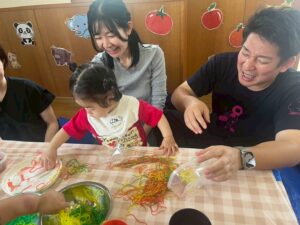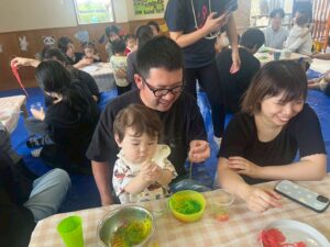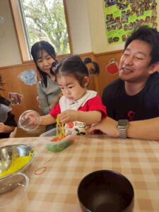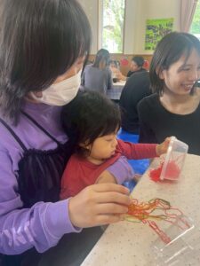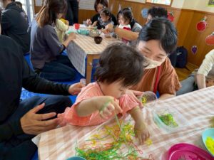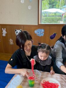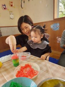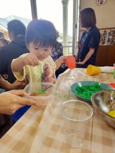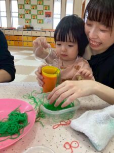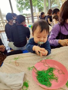 食紅で色を付けたカラフルな春雨が出てくると、目をキラキラさせて嬉しそうな表情の子どもたち😍