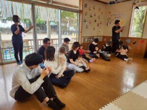 そしてそして…みんなも卵さんになってみよう!ということで「たまごを パカッ」のふれあい遊びをしました🥚