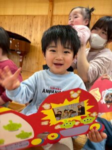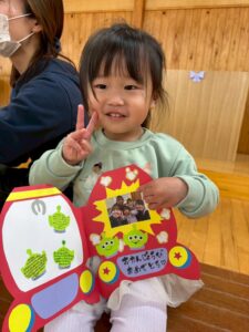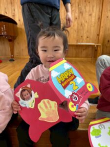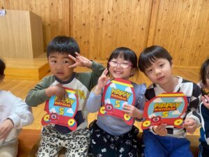 お名前を呼ばれると元気にお返事をして前に出てきてくれたお友達!ニコニコの子もいれば、ちょっぴ恥ずかしそうな子もいましたが、皆におめでとうを言ってもらい嬉しそうでしたよ💕