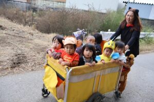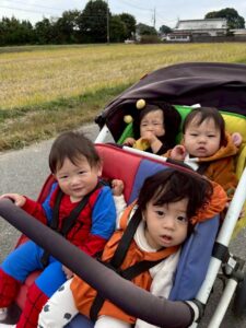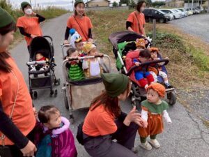 カートやお友達と仲良く手を繋いで、お散歩へレッツゴー!!