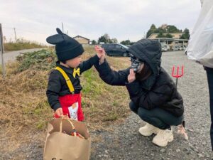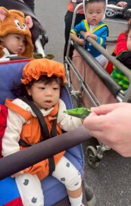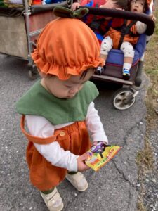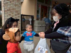 「トリックオアトリート!」と元気いっぱいの掛け声で、お菓子をGET✨