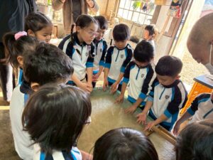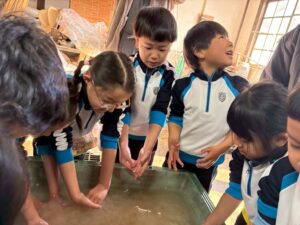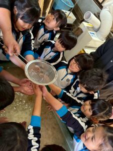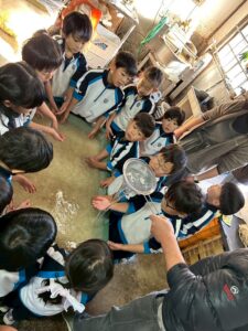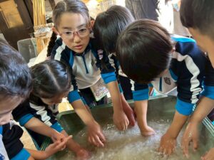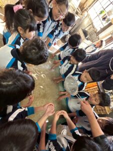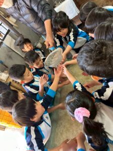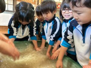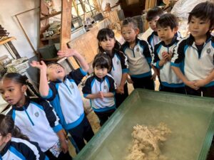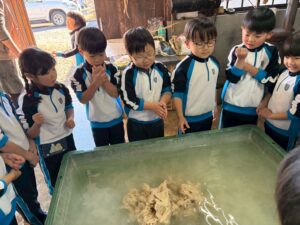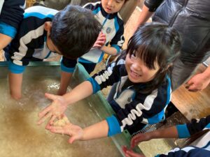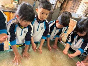 麻を水になじませるようにまぜまぜ〜ちょっと激しめでしたが、みんな冷たい水に手を入れ頑張っていました🙌🏻