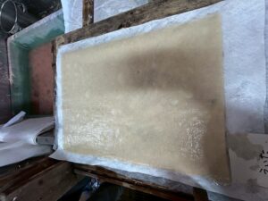 オクラの液と麻をよく混ぜたら、待ちにまった麻紙すき✨