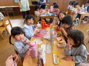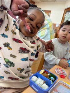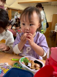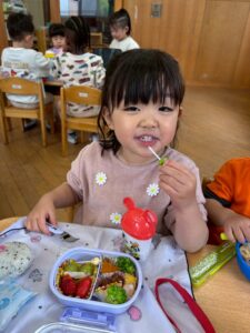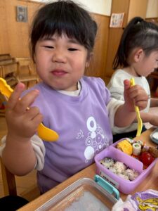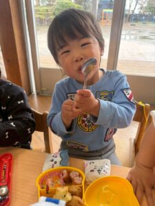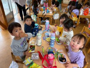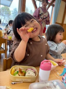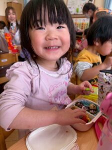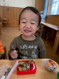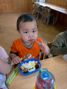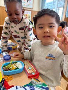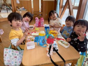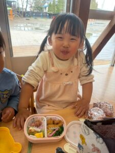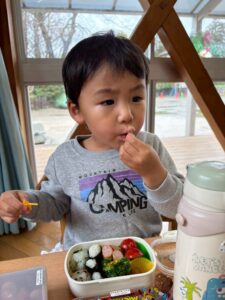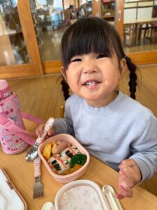 あっという間に時間は過ぎ、保育園へ戻ってお弁当の時間🍱⏱ –