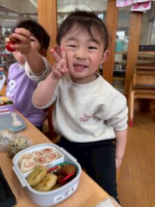登園してすぐに、『ままがお弁当つくってくれたの♡』『〇〇がはいってるよ!』『せんせいに、お弁当みせてあげるね🎵』と、ワクワクが止まらない子どもたち👦🏻👧🏻