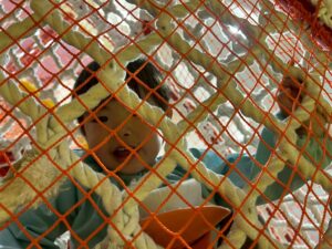 ネットの上に座ってみたり、、